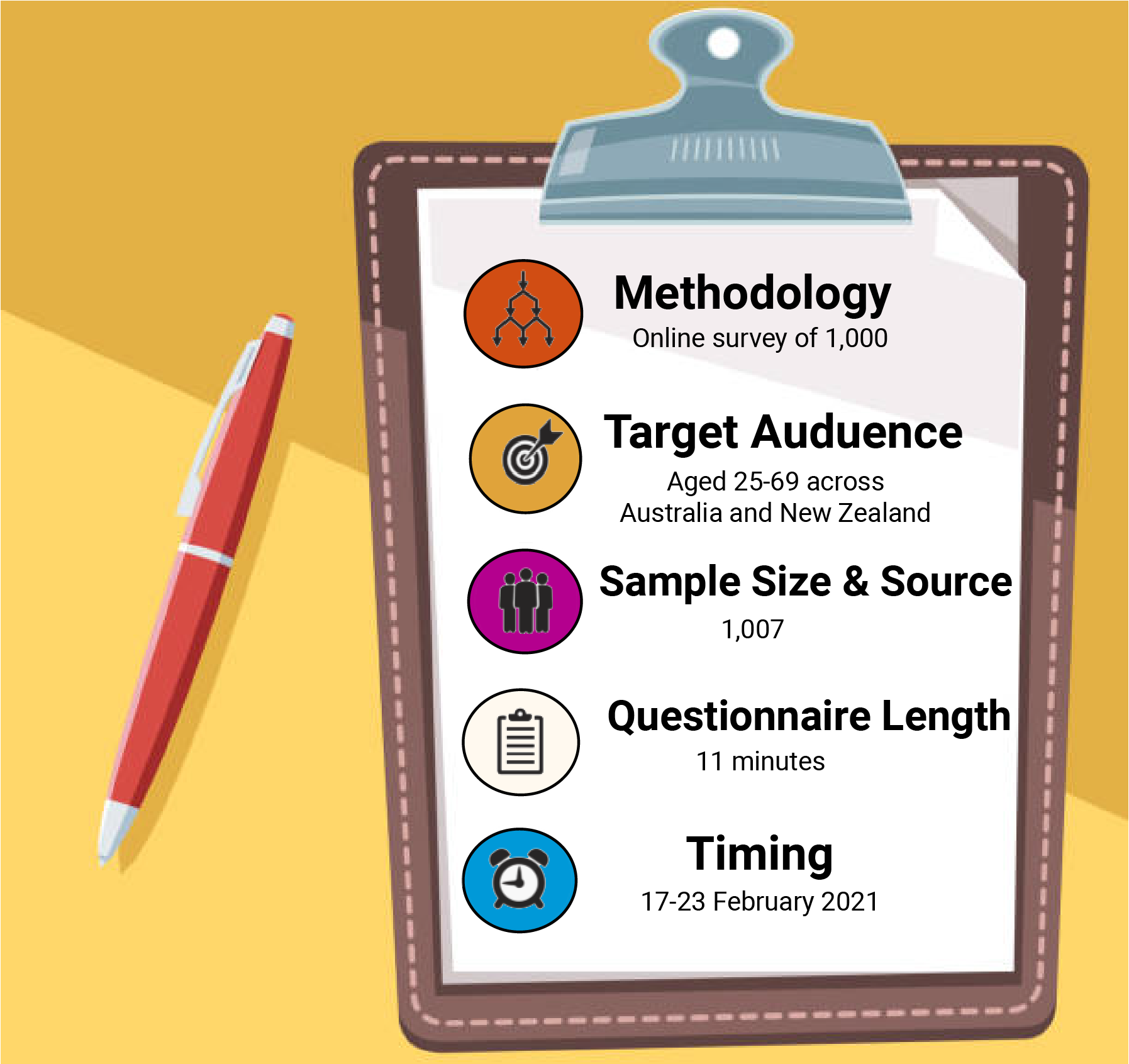 The survey was conducted online and consisted of 1,007 participants, aged between 25-69, across regional and metropolitan Australia and New Zealand. Out of the 1,007 participants, 518 of them are male, while 489 are female. Consequently, the target audience for this survey came from different employment categories, with the majority of the participants belonging to the professional services category (49.2%) and the least number of participants, which are composed of students (2.8%). The income of participants ranges from $34,999 and below to $130,000 and over, with 5.90% preferring not to mention.