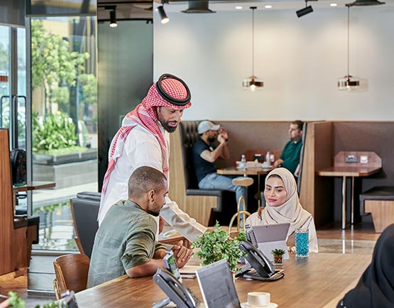 1 day / month Coworking space use included + pay-as-you-go at SAR150 / day at our spacious Coworking lounges at any location. Pay only when you need it, where you need it